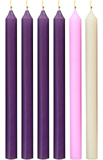 Adventskaarsset – set van 6 kaarsen (4 paars/1 roze/1 ivoorkleurig of wit) dinerkaarsen in bistrostijl: Amazon.nl