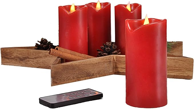 LED echte wax kaarsen - set van 4 met afstandsbediening en houten dienblad - adventskaarsen: Amazon.nl
