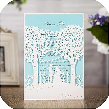 Amazon Com Wedding Invitations With White Laser Cut Trees Bride Groom Design Invites Cards Blue Inner Paper 100pcs Blank Office Products