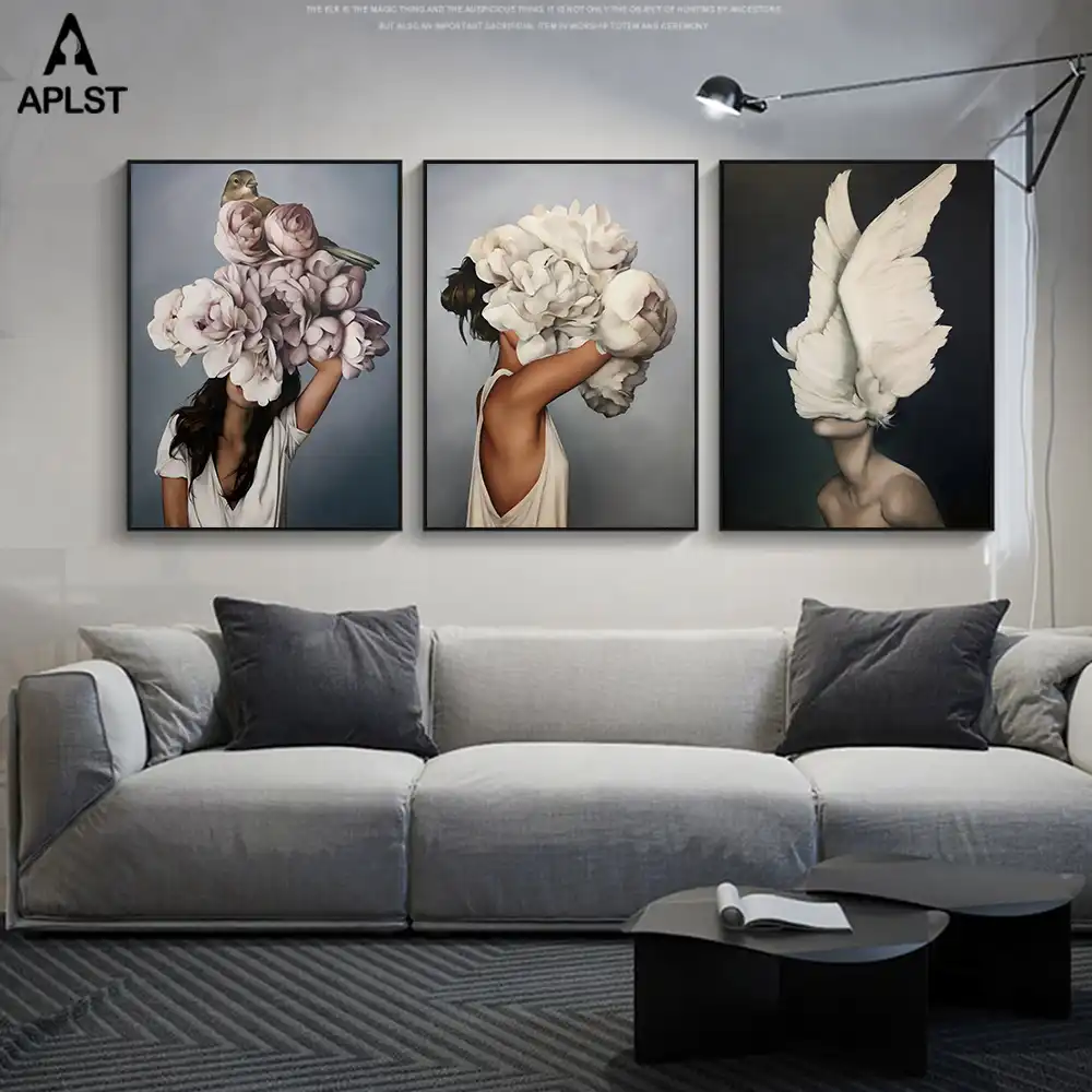 Feder Blume Frau Kopf Leinwand Poster Nordic Abstrakte Wand Kunst Druck Malerei Moderne Dekorative Bild Wohnzimmer Dekoration|Malerei und Kalligraphie| - AliExpress