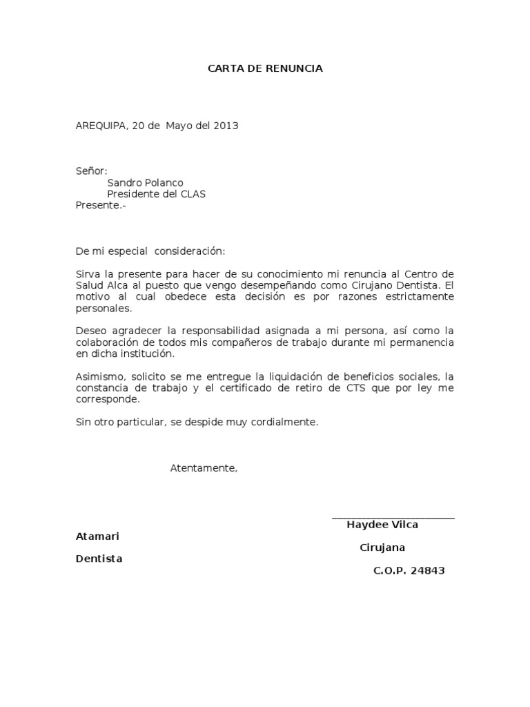 Carta De Renuncia Exoneracion Plazo De Ley - About Quotes n
